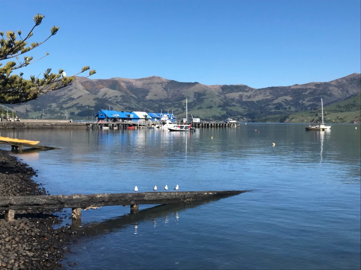 Christchurch. I didn’t know what to expect. It seemed a mix of ongoing despair and hopeful optimism. The Cathedral Square still resembled an earthquake zone but there were rebuilding projects happening in various pockets. After a walk around, it was time to make our way to somewhere to stay – Akaroa. Beautiful harbour on the Banks Peninsula, a two hour windy, hilly drive which was worth the effort. A freedom camp in the boat yard car park was our site for the he night.