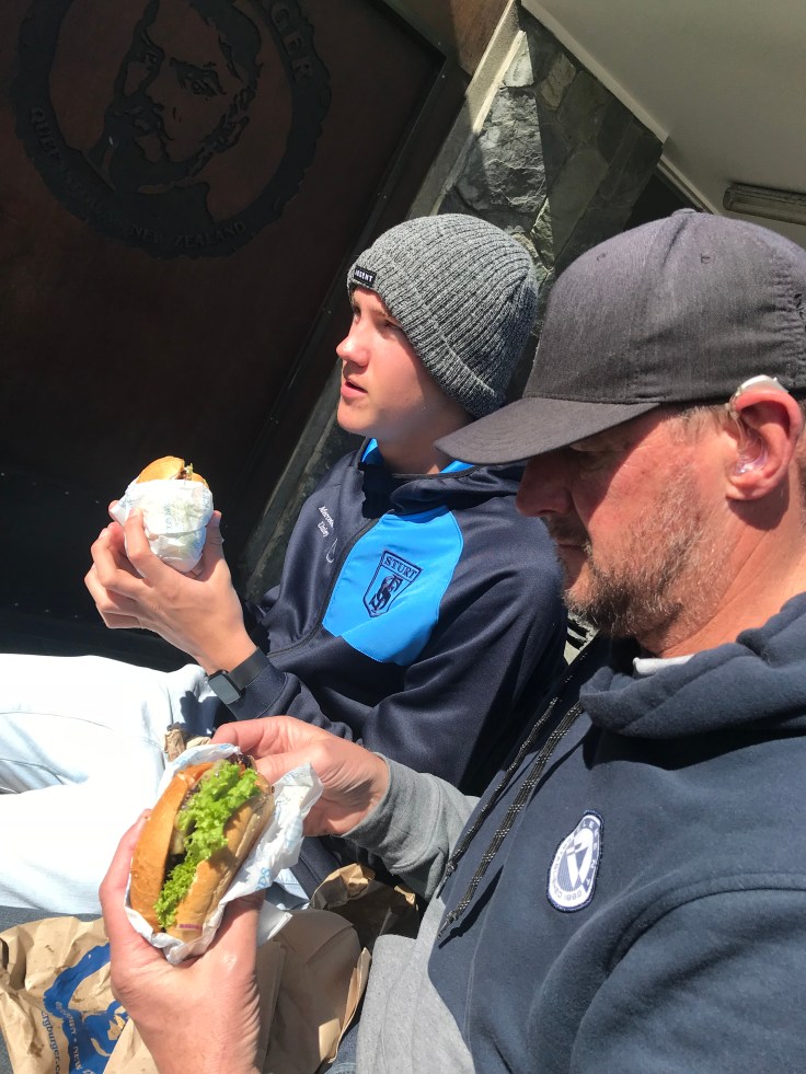 Tired but content describes the travellers after arriving home by taxi at around 7.45 pm (i.e. 10.15 NZ time). No decisions about the next day needed to be made. Breakfast of whatever was left started the day. Pack up, gas refill and waste disposal were completed, before heading to Queenstown for Fergburger. The biggest line up for a burger since Carl’s Jr opened in Mt Barker spilled onto the footpath. The burger was tasty but before we could savour the sun, ZQN was on the mind. A full fuel tank was required at 1.80/litre (rueing the failure to fill up at 1.60/litre in Mossburn).